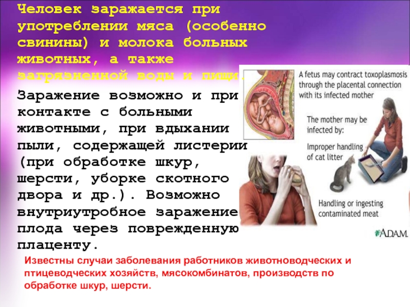 с больными животными заражаются чабаны, доярки, пастухи зооветеринарные работники,работники мясокомбинатов,