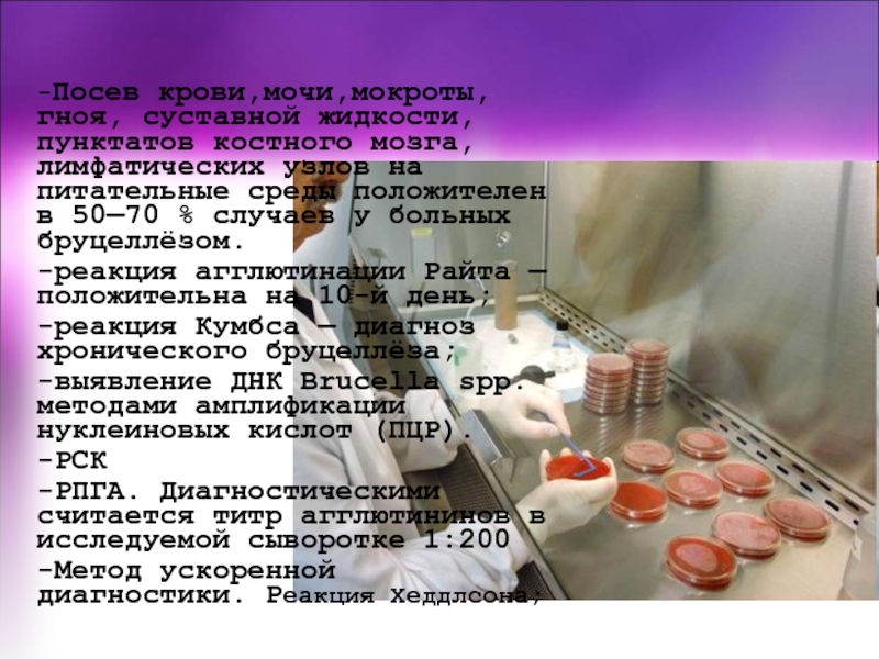 производят посев крови, цереброспинальной жидкости, смывов из носа, глотки, околоплодных
