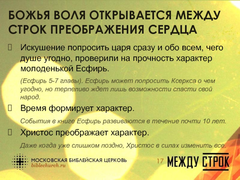 Слайд 17Божья воля открывается между строк преображения сердца
