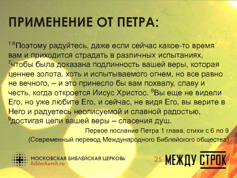 Первое послание Петра 1 глава, стихи с 6 по 9