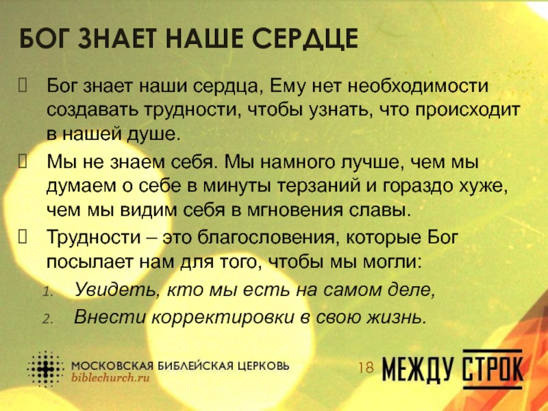 Слайд 18Бог знает наше сердце