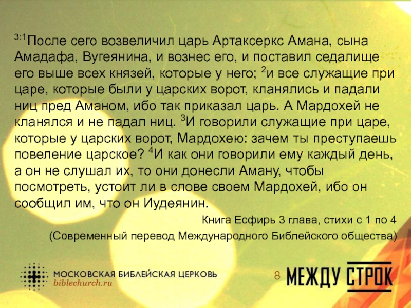 Книга Есфирь 3 глава, стихи с 1 по 4