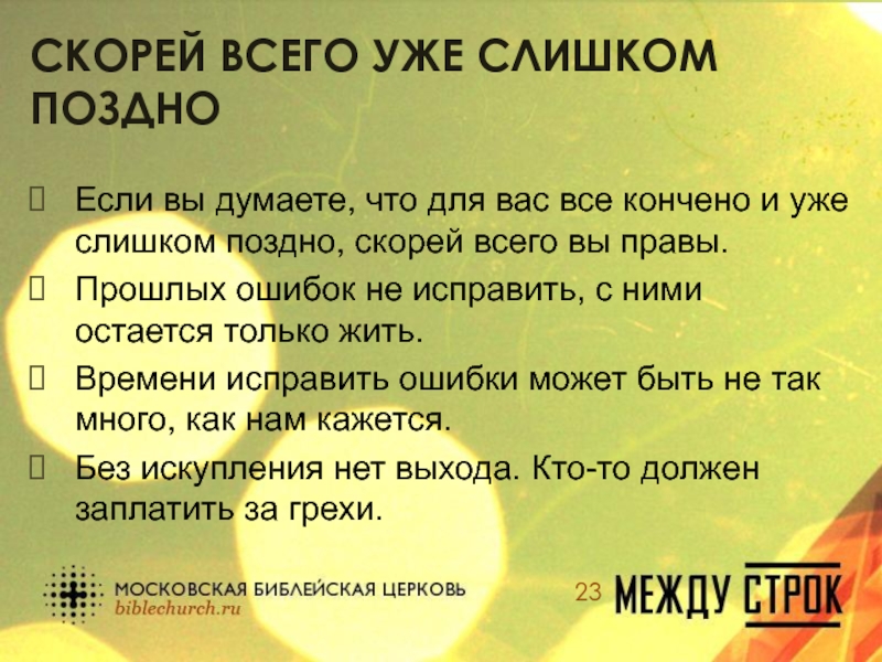 Слайд 23Скорей всего уже слишком поздно