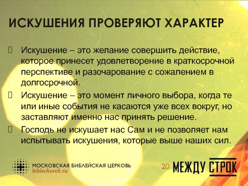 Слайд 20Искушения проверяют характер