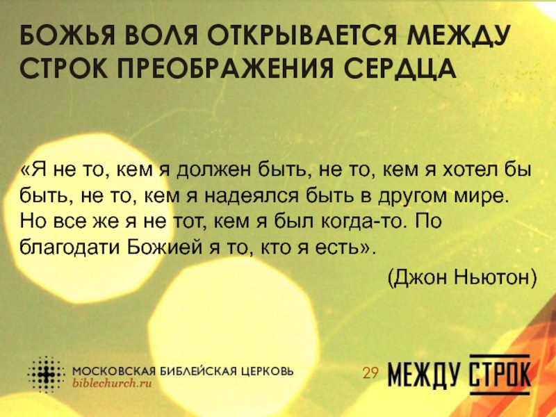 Слайд 29Божья воля открывается между строк преображения сердца