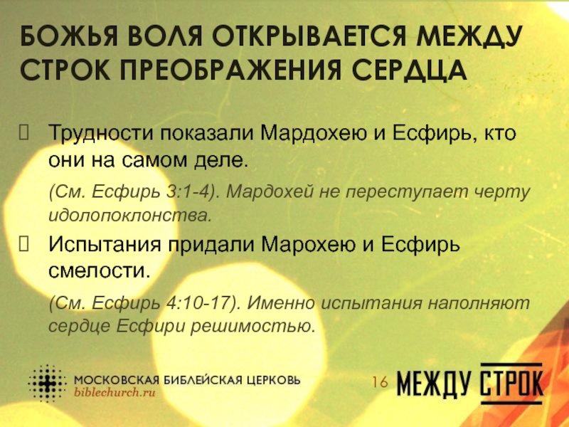 Слайд 16Божья воля открывается между строк преображения сердца