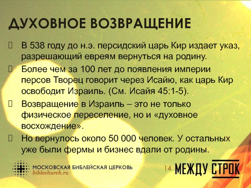 Слайд 14Духовное возвращение