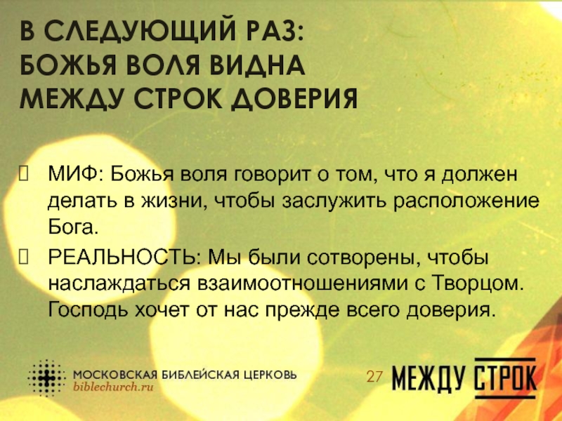 МИФ: Божья воля – это план действий, который