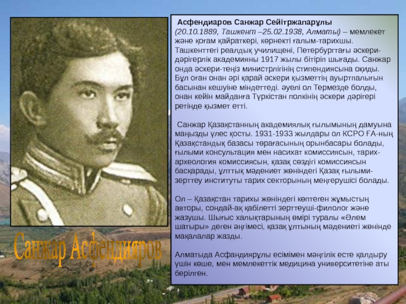 Слайд 13Санжар Асфендияров