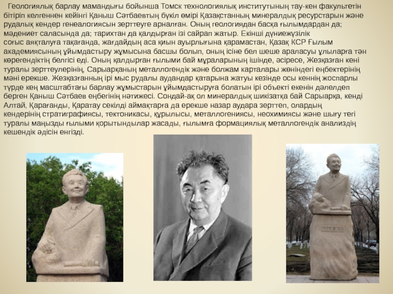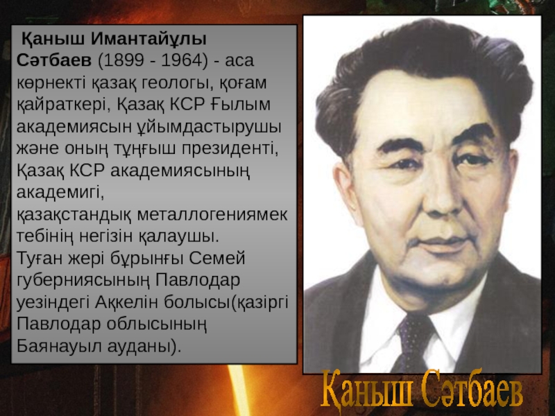 геологы, қоғам қайраткері, Қазақ КСР Ғылым академиясын ұйымдастырушы және оның тұңғыш президенті,