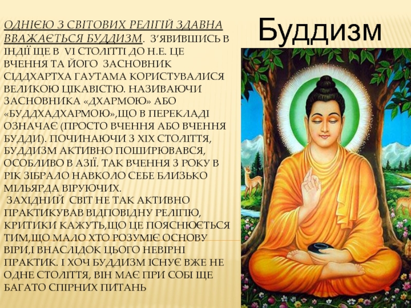 Слайд 2Однією з світових релігій здавна вважається Буддизм. З’явившись в індії