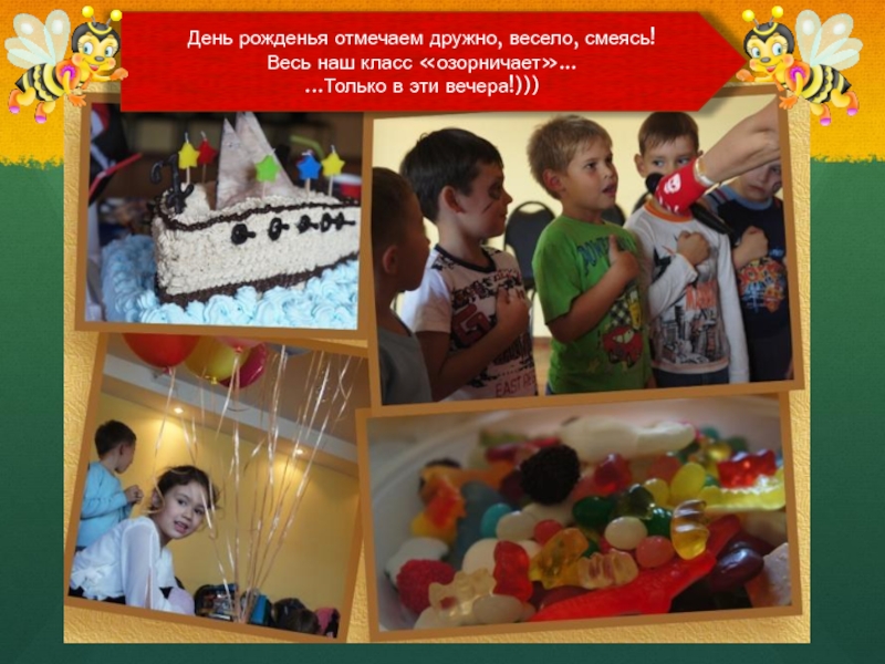 Слайд 7День рожденья отмечаем дружно, весело, смеясь!