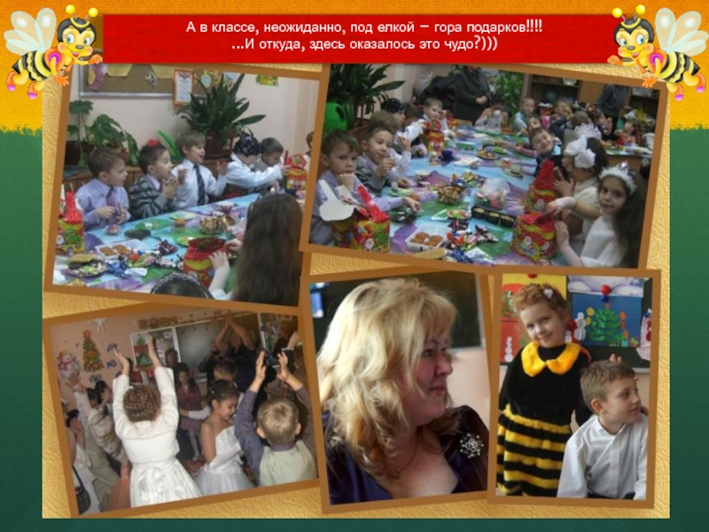Слайд 34А в классе, неожиданно, под елкой – гора подарков!!!!