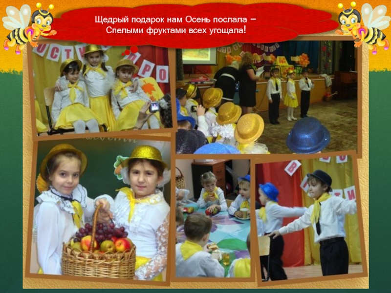 Слайд 15Щедрый подарок нам Осень послала –Спелыми фруктами всех угощала!
