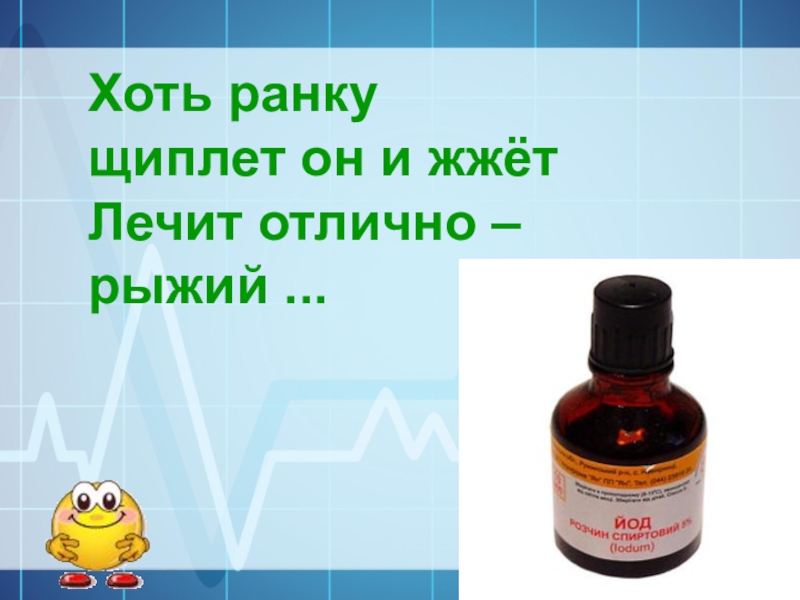 Хоть ранку щиплет он и жжётЛечит отлично –рыжий ...