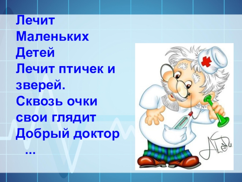 ЛечитМаленькихДетейЛечит птичек изверей. Сквозь очкисвои глядитДобрый доктор ...