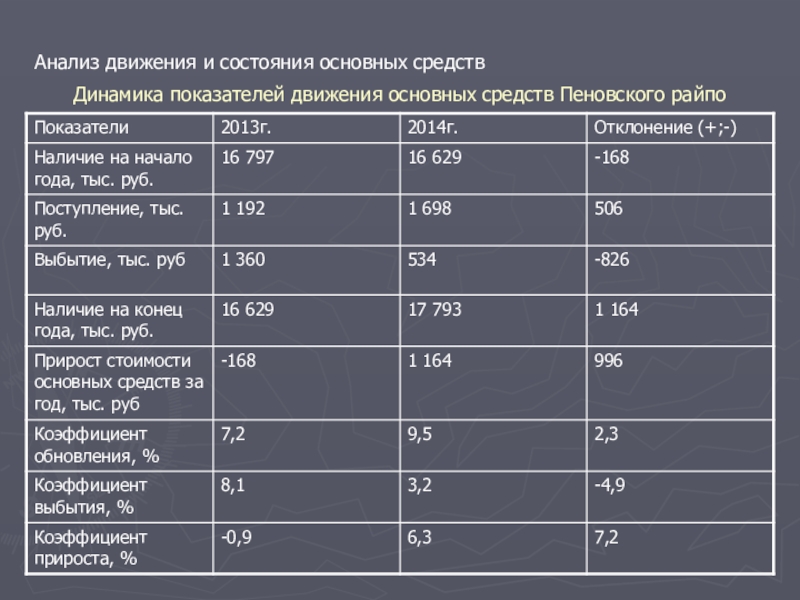 Динамика показателей движения основных средств Пеновского райпо