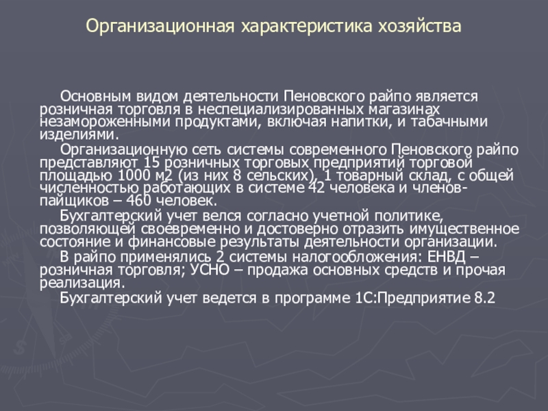 Основным видом деятельности Пеновского райпо является розничная торговля
