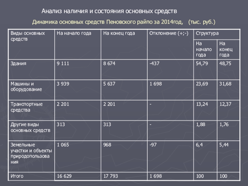 Целью анализа является изучение состава и направлений использования основных средств и разработка мероприятий по повышению их эффективности.