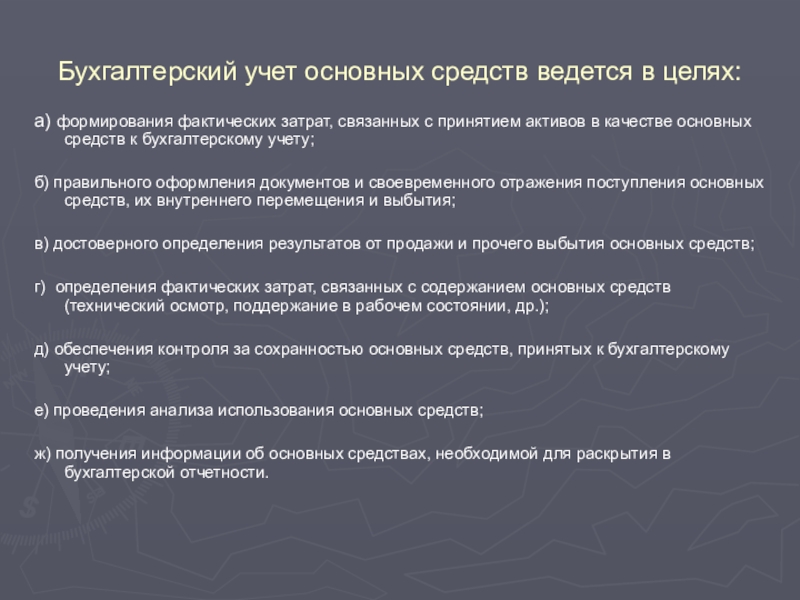 ж) получения информации об основных средствах, необходимой для раскрытия в бухгалтерской отчетности.