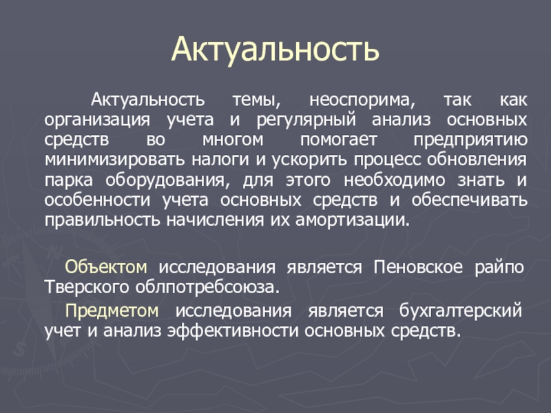 Актуальность темы, неоспорима, так как организация учета и регулярный