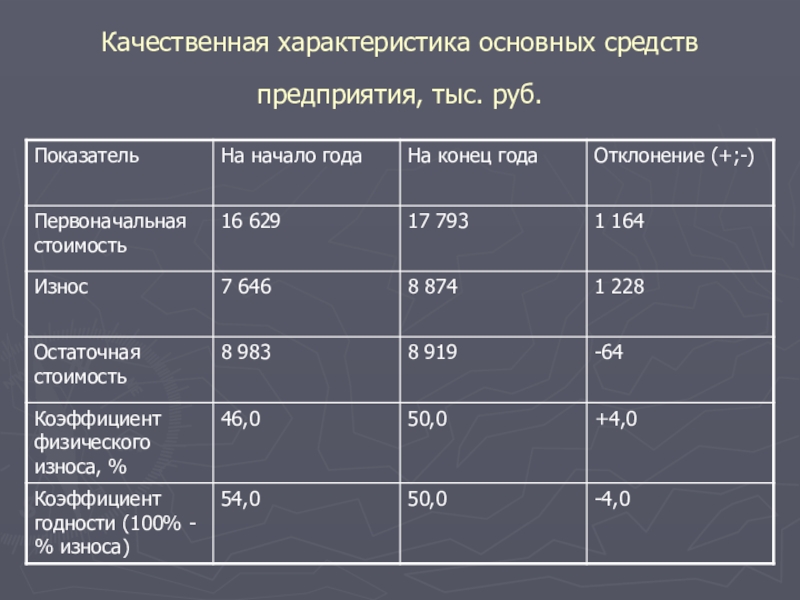 Слайд 24Качественная характеристика основных средств предприятия, тыс. руб.