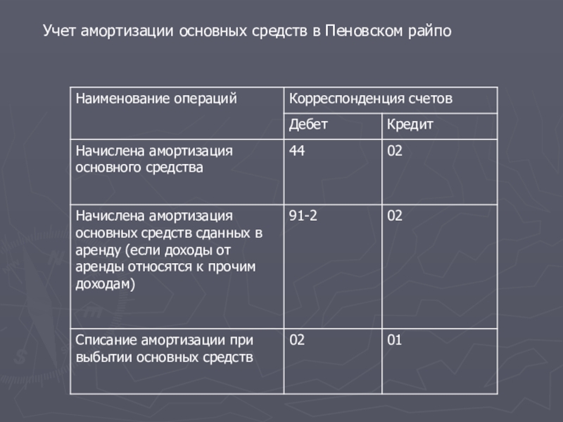 Слайд 19Учет амортизации основных средств в Пеновском райпо
