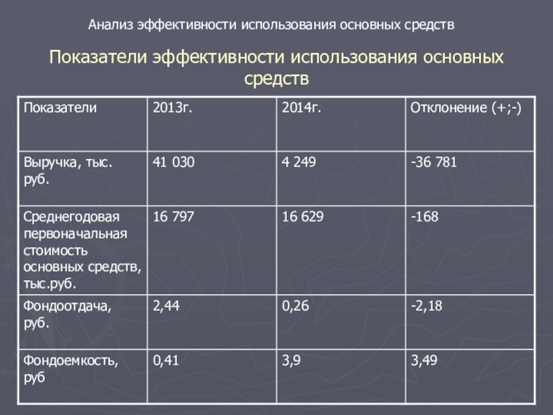 Слайд 25Показатели эффективности использования основных средств