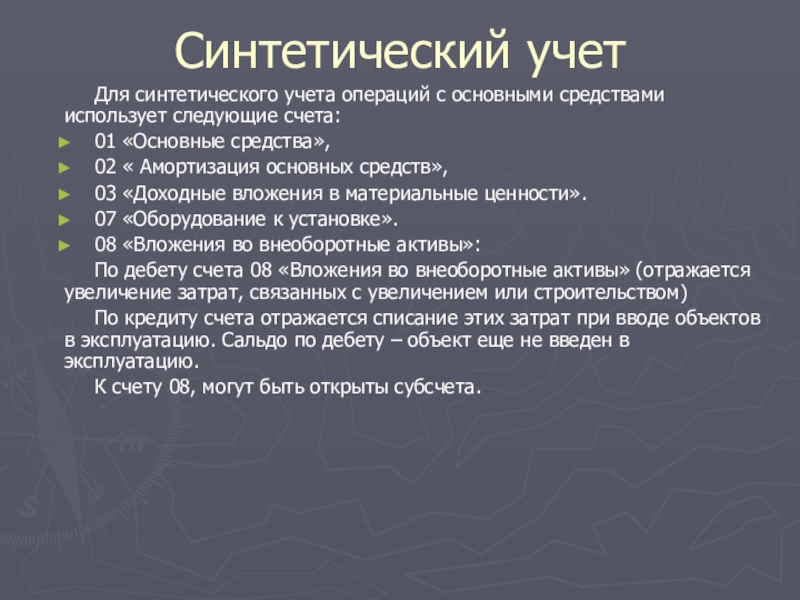 Для синтетического учета операций с основными средствами использует следующие