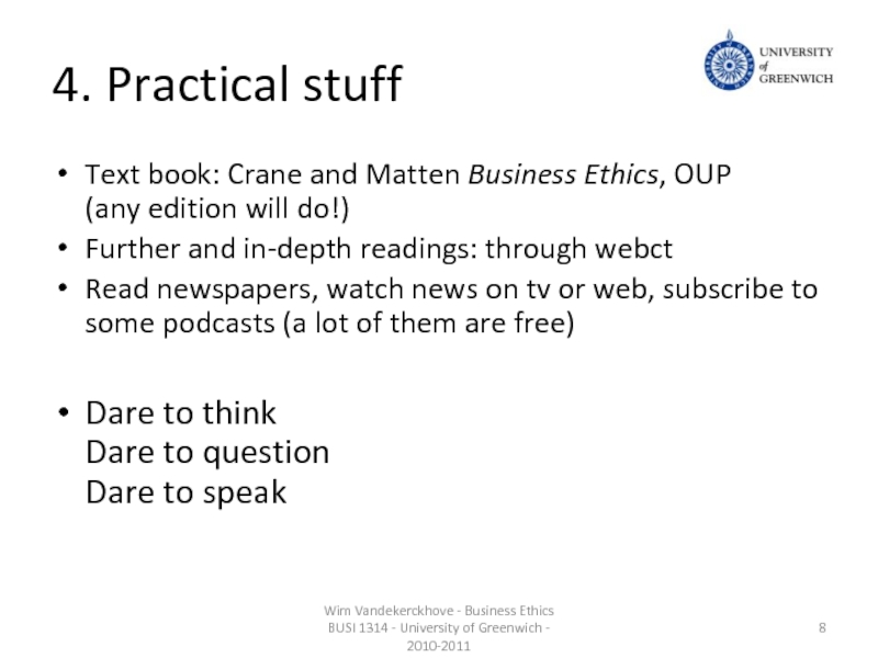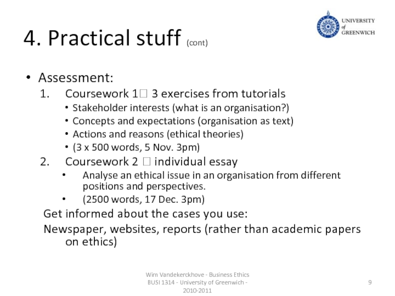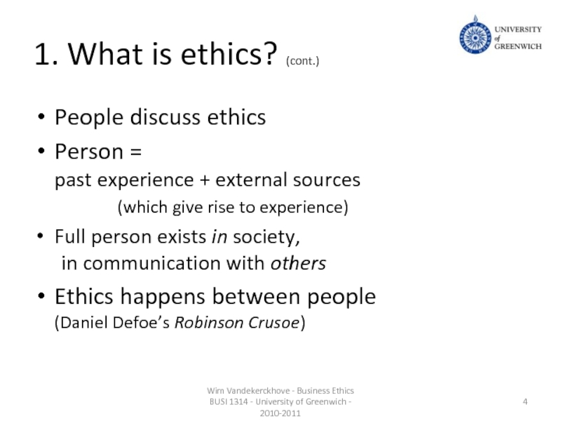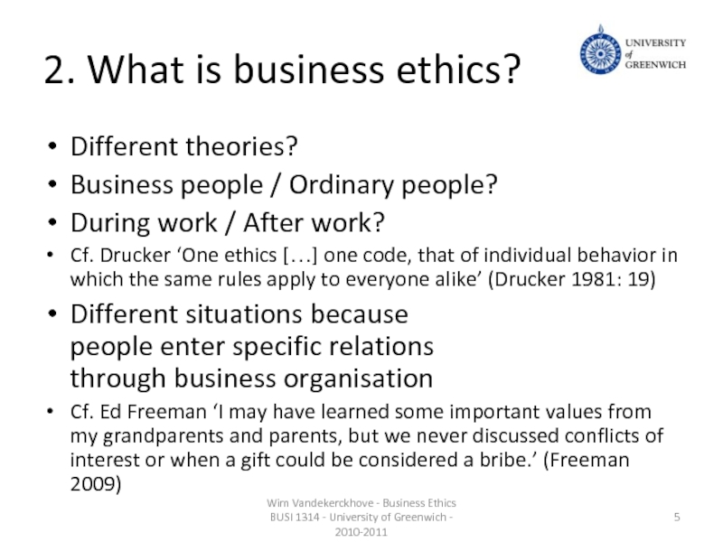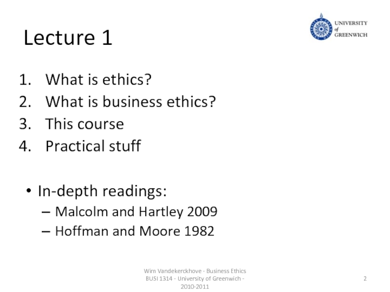 Wim Vandekerckhove - Business Ethics BUSI 1314 - University of Greenwich - 2010-2011