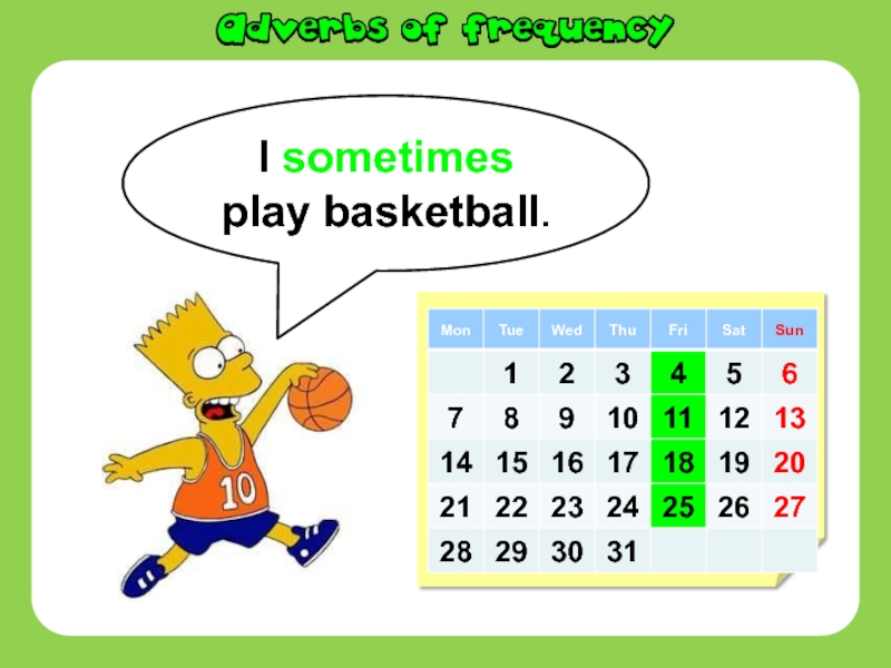 Слайд 9I sometimes play basketball.