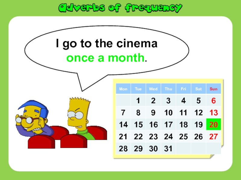 Слайд 10I go to the cinema once a month.