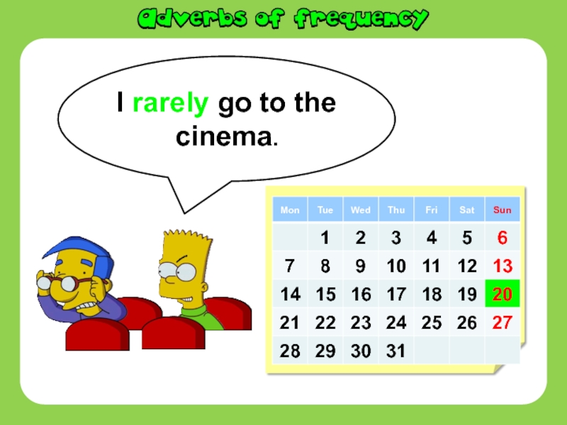 Слайд 11I rarely go to the cinema.