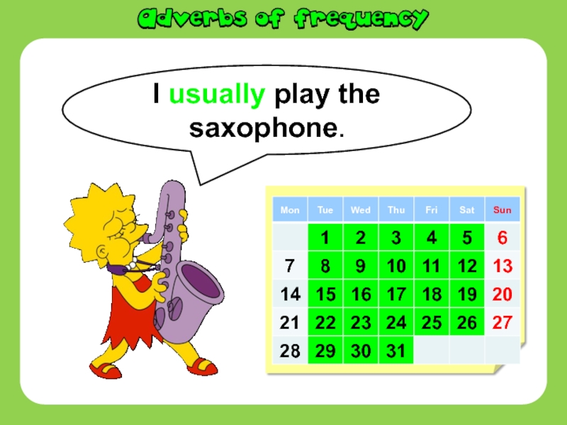 Слайд 5I usually play the saxophone.