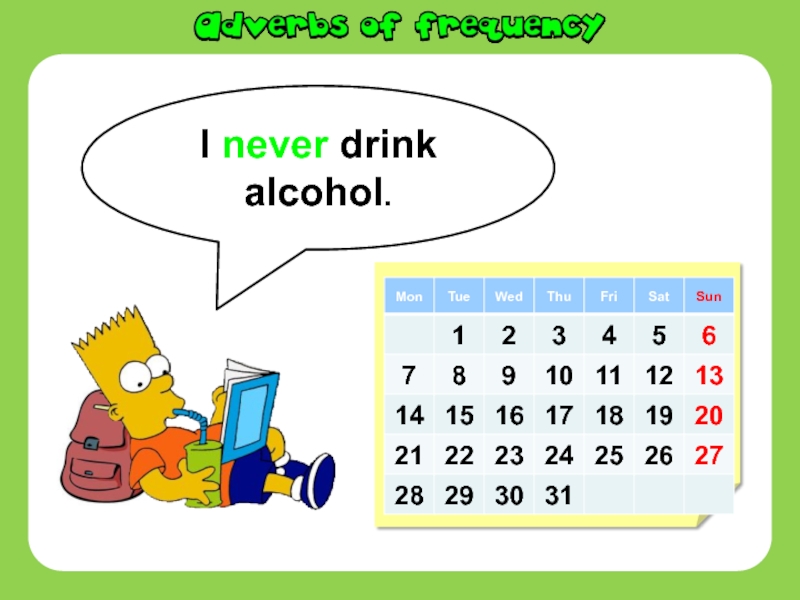 Слайд 13I never drink alcohol.