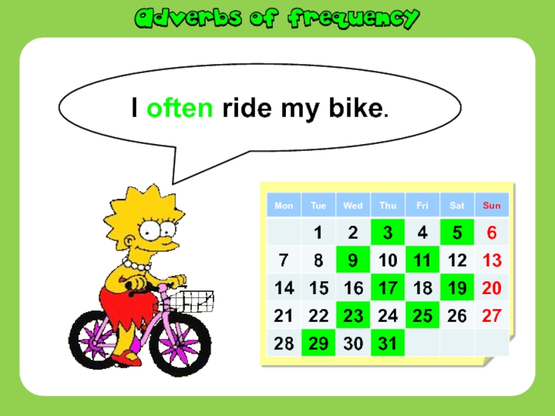 Слайд 7I often ride my bike.