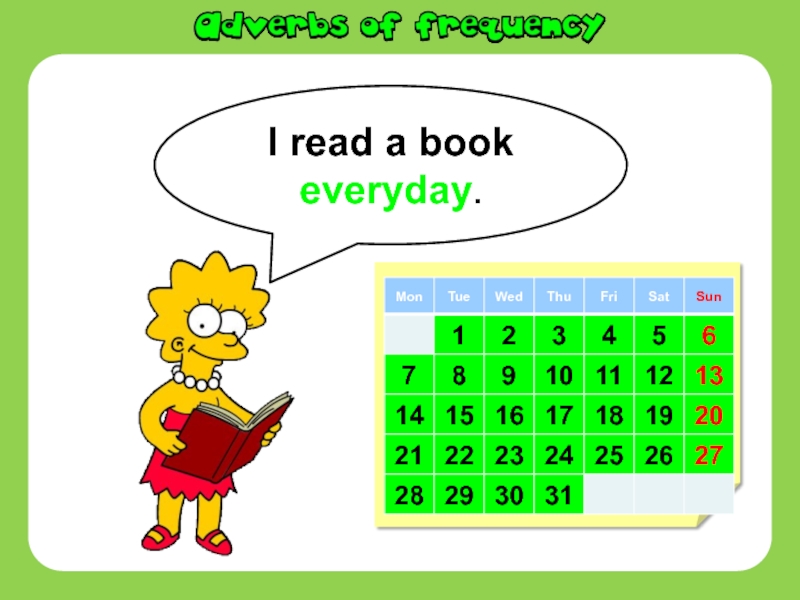 Слайд 2I read a book everyday.