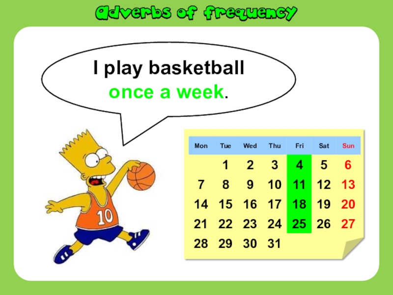 Слайд 8I play basketball once a week.