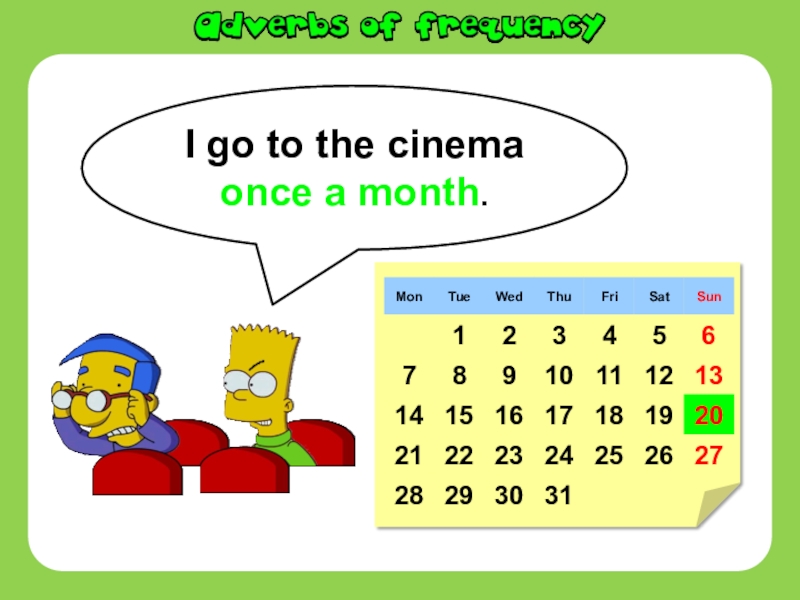 Слайд 10I go to the cinema once a month.