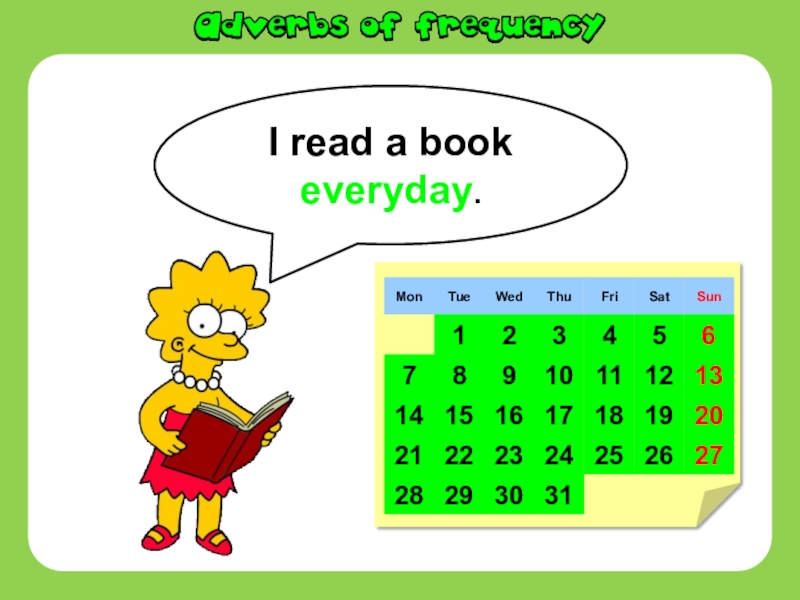 Слайд 2I read a book everyday.