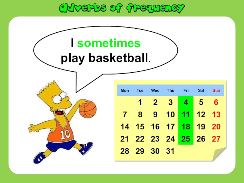 Слайд 9I sometimes play basketball.