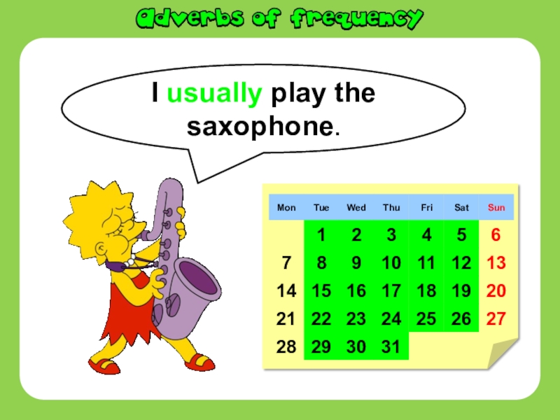 Слайд 5I usually play the saxophone.