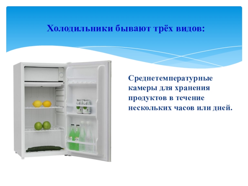 Слайд 4Холодильники бывают трёх видов: