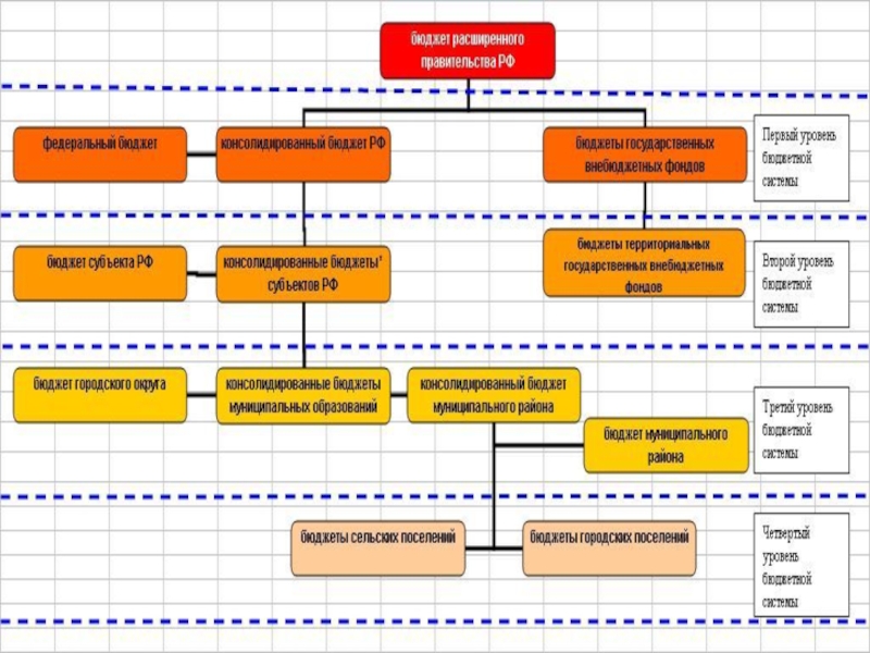 I уровень — федеральный бюджет и бюджеты государственных внебюджетных фондов;