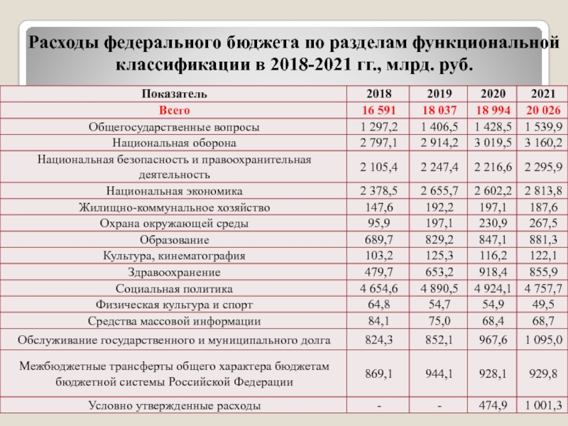 Основные показатели федерального бюджета РФ в 2018г. и на плановые