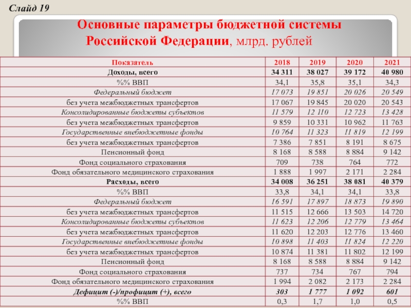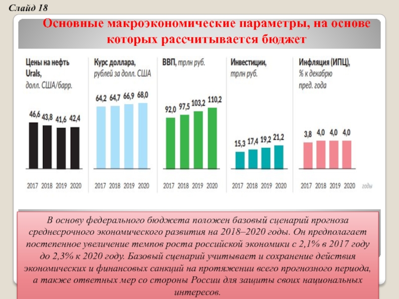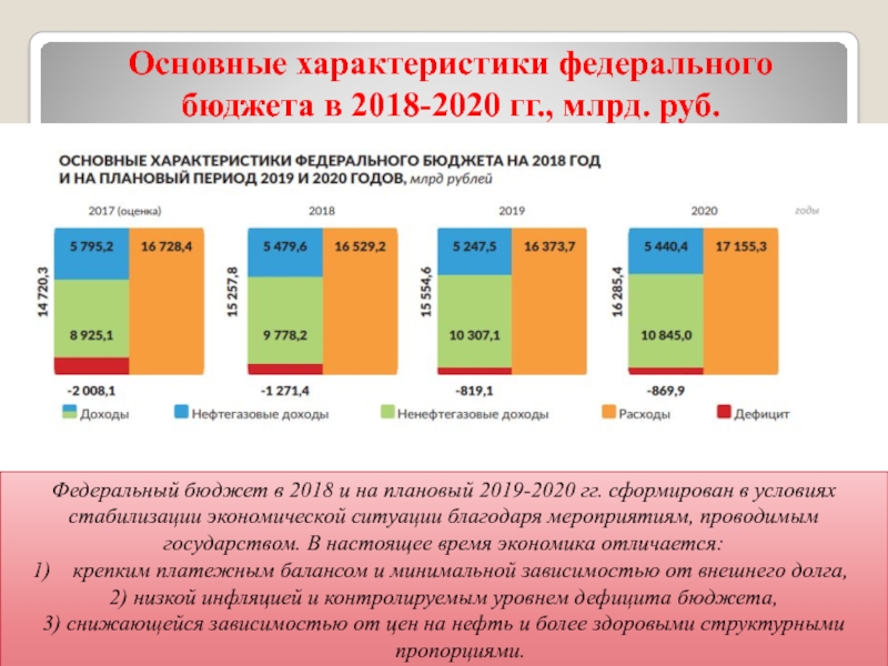 Основные показатели федерального бюджета РФ в 2018г. и на плановые