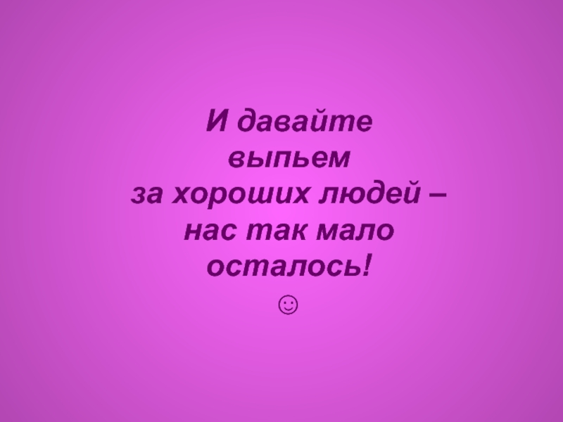 И давайте выпьем за хороших людей – нас так мало осталось!