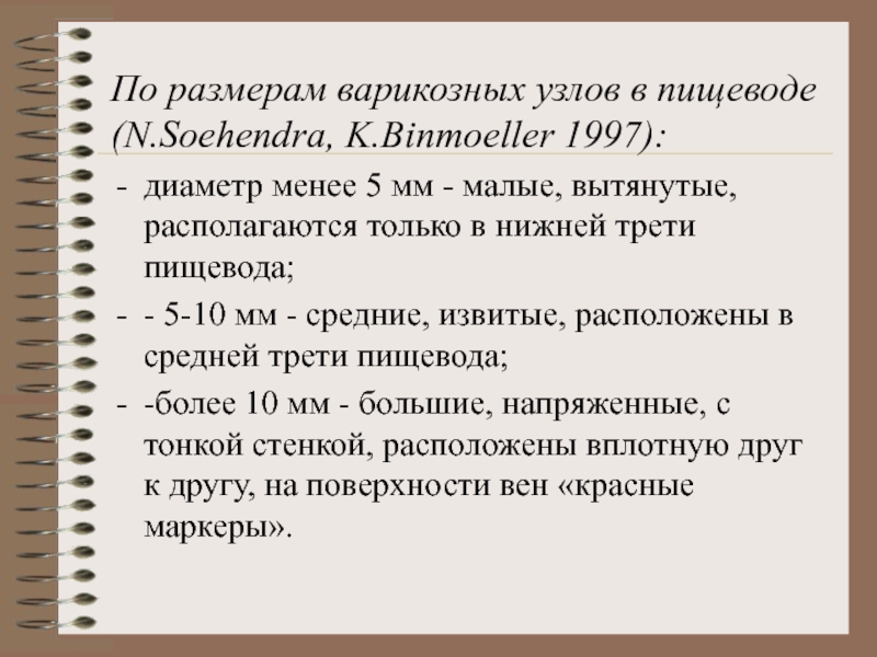 Слайд 11По размерам варикозных узлов в пищеводе (N.Soehendra, K.Binmoeller 1997):