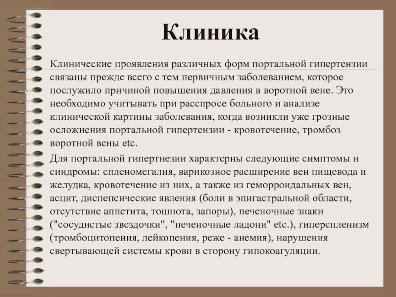 Клинические проявления различных форм портальной гипертензии связаны прежде всего с