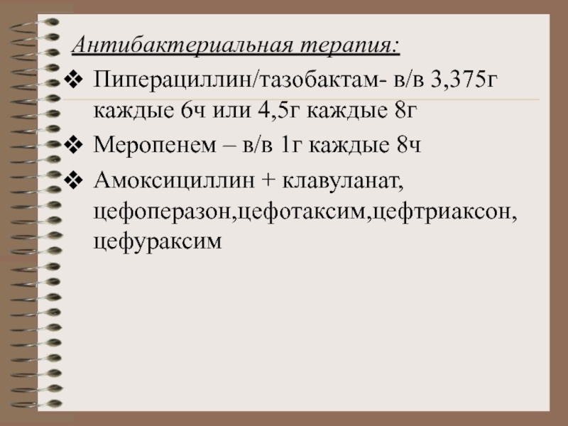 Слайд 20Антибактериальная терапия: